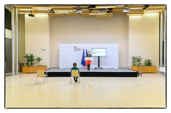 15h Conference de presse de Barbara Pompili ministre de l’écologie. Un seul journaliste présent à cause du Covid_19