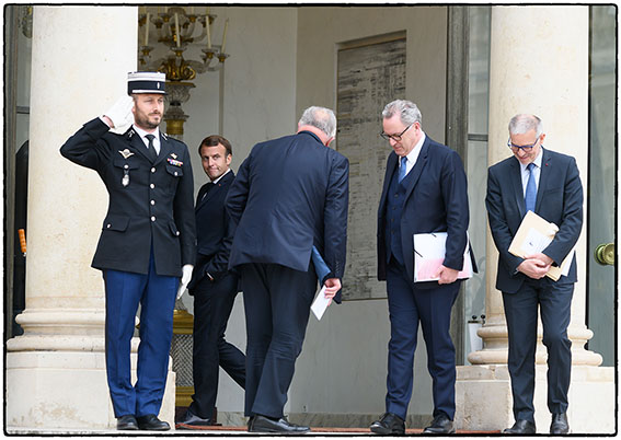 18h30 Emmanuel Macron a l’Elysée avec Richard Ferrand, Gérard Larcher et Patrick Bernasconi