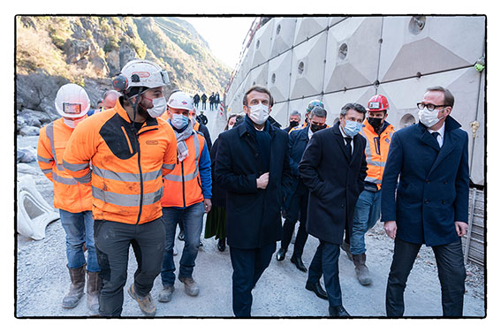 15h Emmanuel Macron rencontre les ouvriers qui reconstruisent la route dans la vallée de la Roya